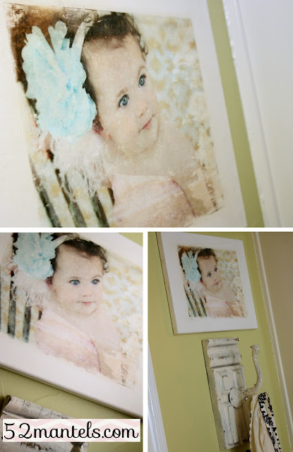 Awesome!! Your daughter is *adorable*! 🙂 Just wanted to say that you can also use a credit card to smooth the photo onto the gel medium on the canvas. This helps to eliminate a lot of the wrinkles that otherwise happen when you smooth it with your fingers. 🙂