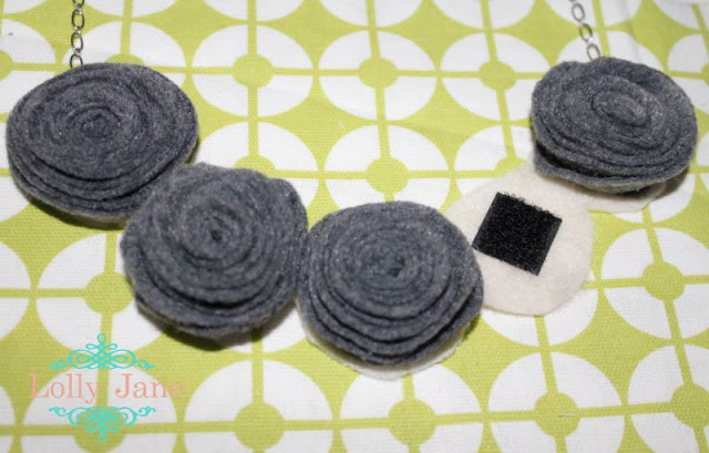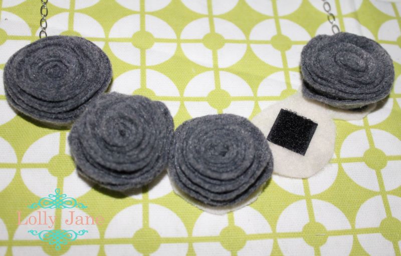 Lay your rosettes in the shape of the necklace onto a scrap piece of felt: