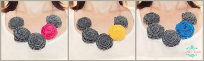 I have been itching to make a felt necklace but couldn’t decide on what colors to make… so after a suggestion from our clever sis’ friend Angie, I went with all of them!