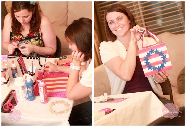 Truth be told, we were in a rush to attend the fun Elmers Craft & Tell hosted by our bestie Katie from Sweet Rose Studio and grabbed a little of this and a little of that from our craft room and ran out the door. But lo and behold, sitting with some talented bloggers, we were inspired and pretty soon our STARS&STRIPESPLAQUE was created: